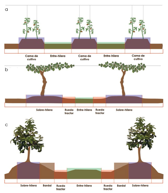 Las consideraciones fundamentales que se toman comúnmente están determinadas por fines productivos, por ejemplo: la especie y variedad; su hábito de crecimiento (foliar y radical); la eficiencia en la captación de luz, dada por el espacio y conducción; la forma de suministrar agua; el uso de maquinaria para acompañar las labores en caso de huertos frutales; viñas y cultivo bajo invernadero, etc. La configuración del perfil horizontal estará determinada por la distancia a la que se cultive la especie escogida, lo que nos permitirá distinguir zonas con diferentes condiciones biológicas del suelo.