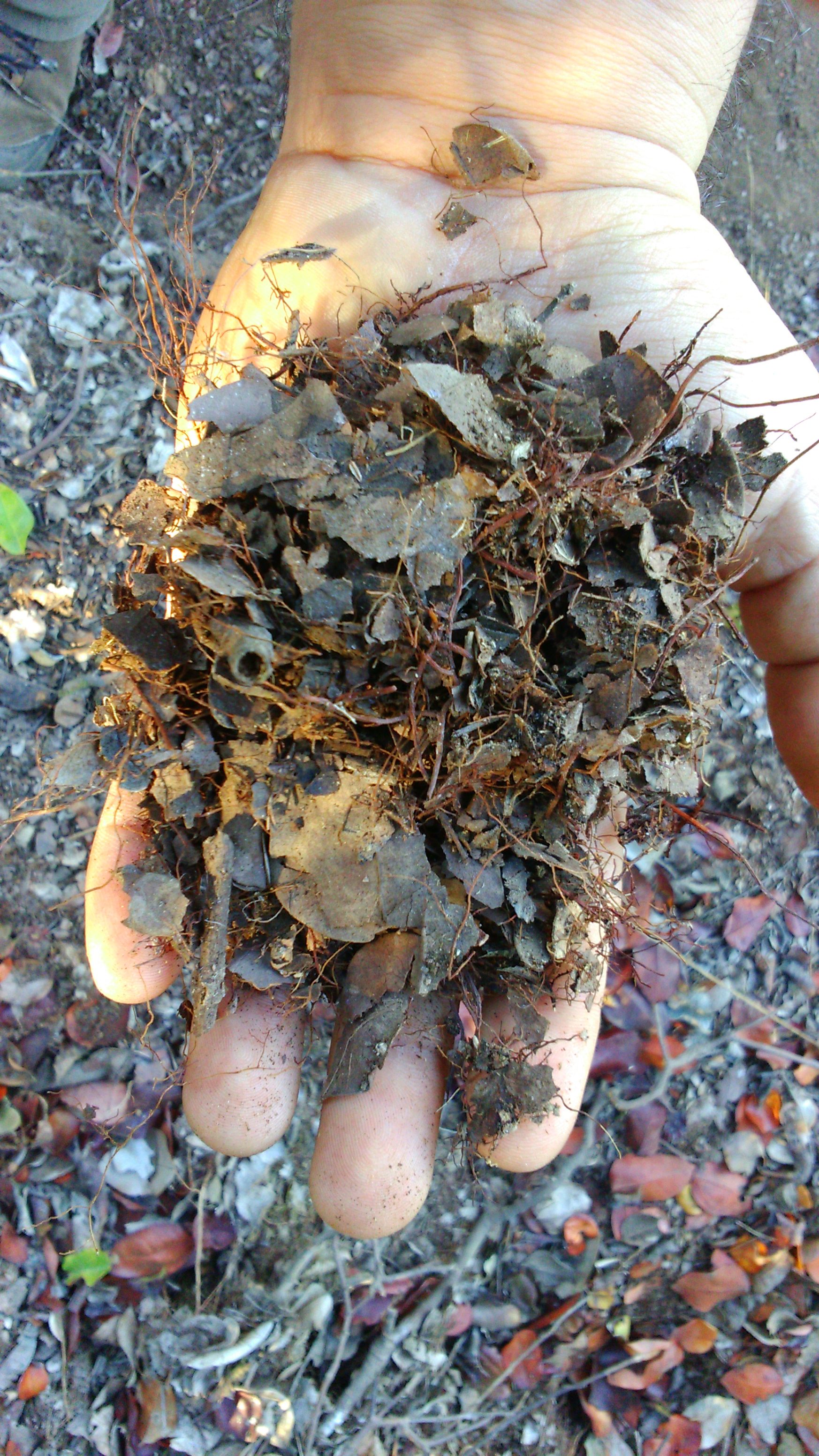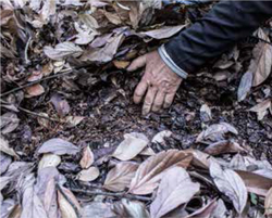 Con las manos removemos los restos superficiales (Figura 13) y sentimos la humedad debajo de esta capa, nos acercamos al universo de la microbiología mediante los olores que emanan de esta zona. Estos aromas (olor a tierra) es una mezcla de hongos, hojas y del mismo suelo que nos comienzan a indicar la salud de nuestros suelos.