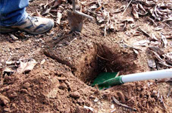 • Preparamos la caja resistente y el saco plástico, colocándolos en un lugar plano cercano al lugar donde extraeremos un cubo de suelo y reforzamos el fondo de la caja con la tabla de madera.
