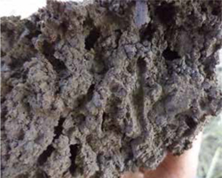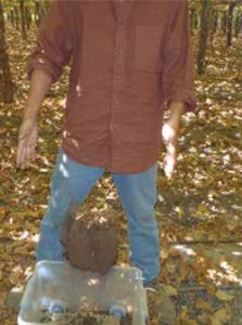 • Rompemos por la mitad la muestra y examinamos la presencia de macroporos (poros que podemos alcanzar a distinguir con nuestros ojos, desde los 0,5 mm hasta más de 10 mm) presentes en la cara expuesta de la muestra del suelo.