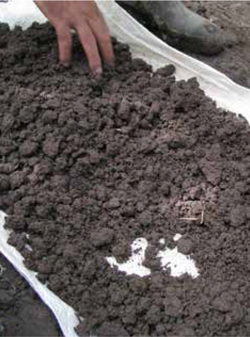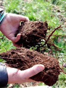 • En los terrones en que observamos planos de fractura expuestas o fisuras, con la mano aplicamos una presión ligera para separarlos. Si el terrón no se separa con facilidad, no aplicamos más presión. Los terrones grandes llenos de raíces los desintegramos en agregados, extrayendo las raíces de la muestra. (Figura 16).