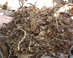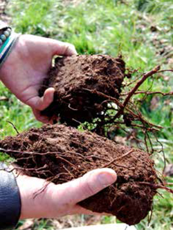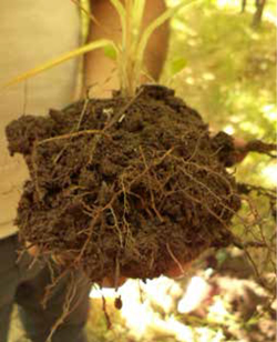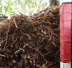 Observamos con más detalles su composición, la cual puede ser solo del cultivo o de otras especies. Registramos la abundancia, el largo, diámetro, entramado, color y olor de las raíces encontradas.