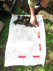 • Procedemos a la extracción de un cubo de 20 cm por lado con la ayuda de la pala forestal o pala rectangular y realizamos una pestaña lateral para poder sacar el cubo lo más íntegro posible (Figura 14).