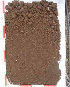 • Extraemos con una pala una muestra de suelo. En superficie de10 cm de ancho y 10 cm de largo y 20 cm de profundidad extraído cercano al lugar donde se extrajo el cubo usado para evaluar la Agregatósfera (Figura 29).