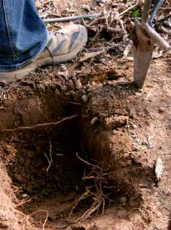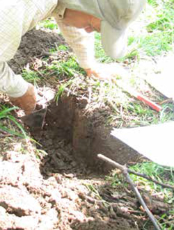 • Despejamos una pared dejada por la evaluación de la Agregatósfera con la ayuda de la paleta de albañil, buscando las raíces que puedan aparecer hasta los 20 cm (Figura 25).
