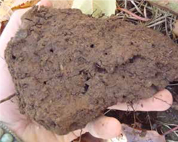 Estas estructuras pueden además estar vacías o llenas de estiércol, si están vacías, se pueden reconocer por sus paredes con una coloración más obscuras, distinguiéndose dentro del suelo.