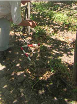 • Ponemos las dos varas de medida de 40 cm (Figura 10) en forma perpendicular sobre el suelo y tomamos una fotografía enmarcada en las varas de medida (Figura 11).